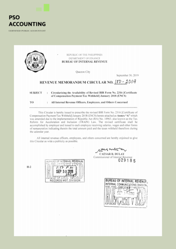 Circularizes the Availability of Revised BIR form No. 2316 Certificate of Compensation Payment/ Tax Withheld January 2018